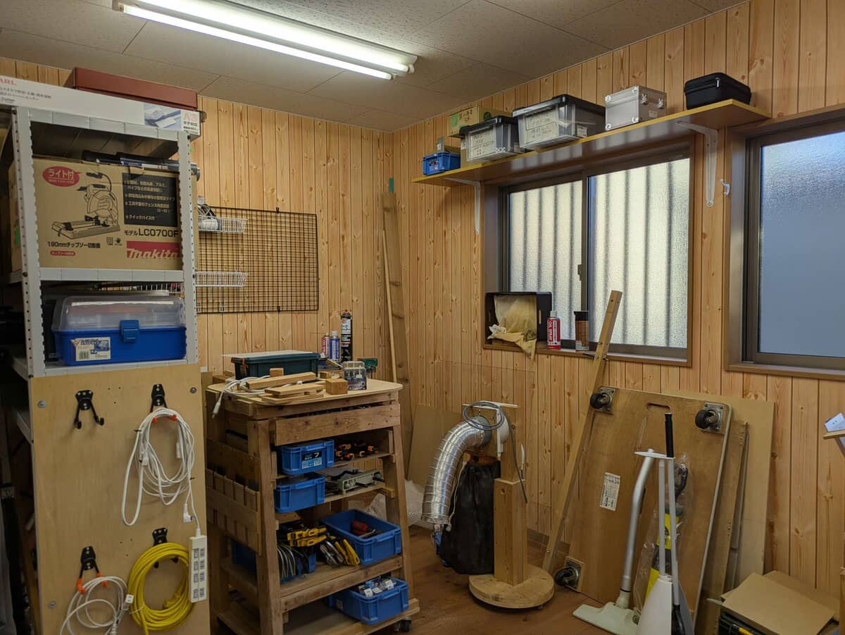 大人の秘密基地!ガレージハウスとして活用。平屋はパーツ等の作業にも活用できます。一部の工作機械はご自由にご活用ください。