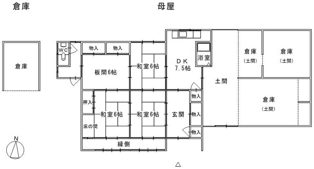 - 別棟倉庫あり(10㎡程度)、農地あり (川を挟んで目の前の田1549㎡、その他の田3410㎡)