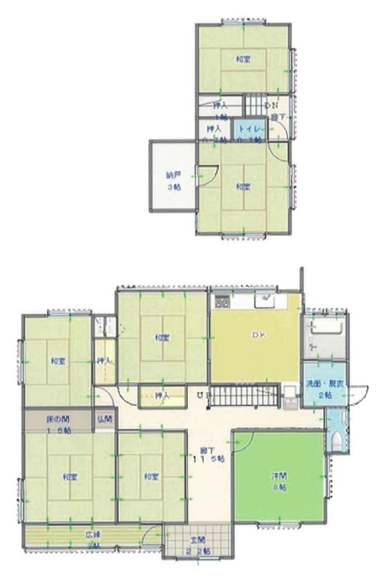 - 田5筆3,222.3㎡、その他(宅地2筆602.61㎡、山林8筆16,500㎡、納屋2階建て89.87㎡、物置3.61㎡)