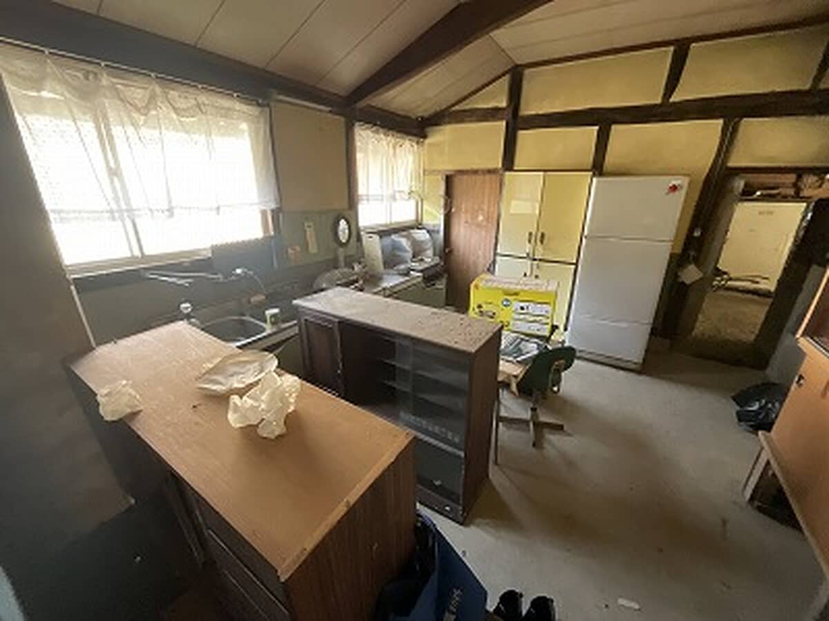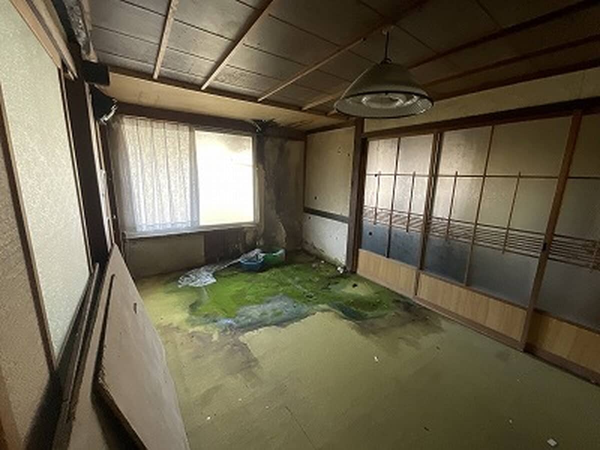 居間・寝室は雨漏り有り。納屋北側の下屋根も改修または解体が必要。水道は山水を使用。