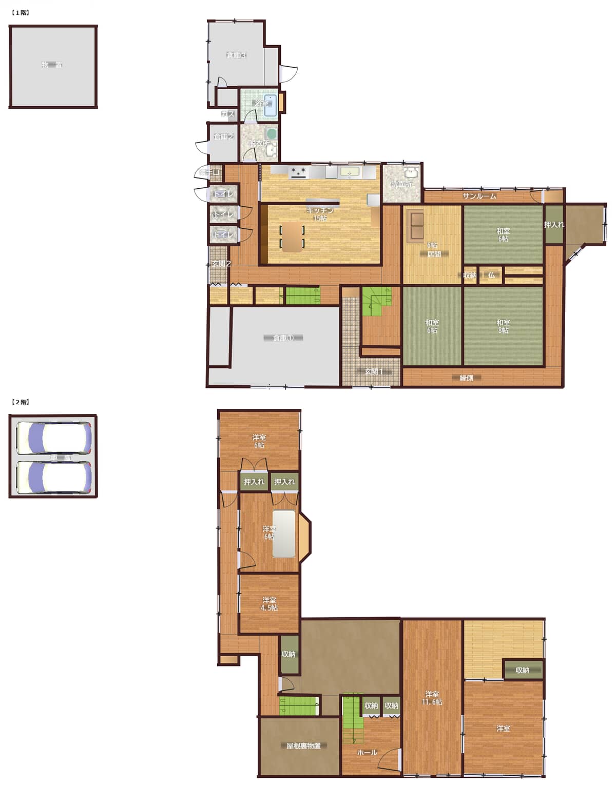 2世帯の方へおすすめ! 古民家と新しく増築された’’L字型’’の物件。
