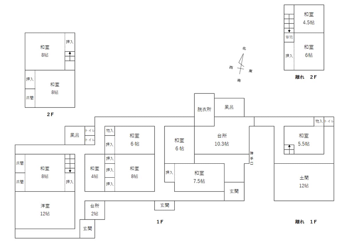 - 離れ、宅地、畑、原野