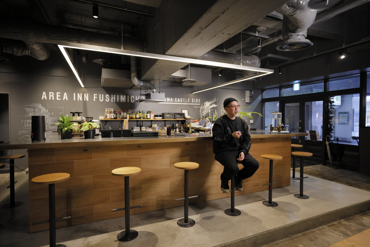 「AREA INN FUSHIMICHO」は今、暮らすように滞在できる宿や、講座やイベントもできるカフェを備えた複合施設として生まれ変わり、市内外の人々の交流拠点となっています。