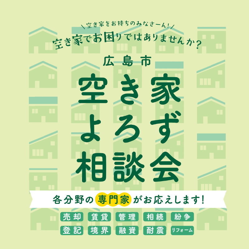 広島市で各分野の専門家がお答えする空き家よろず相談会が開催されます。
