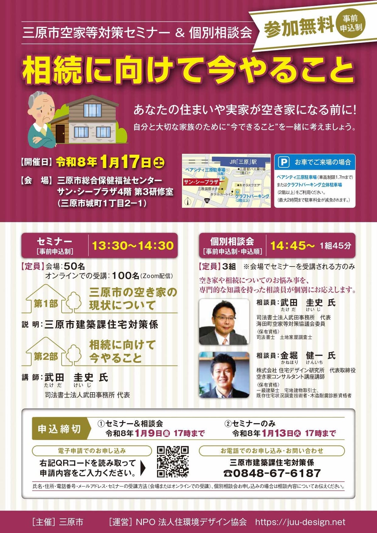 三原市で空き家対策セミナー&個別相談会を開催します!!(Zoom配信あり)